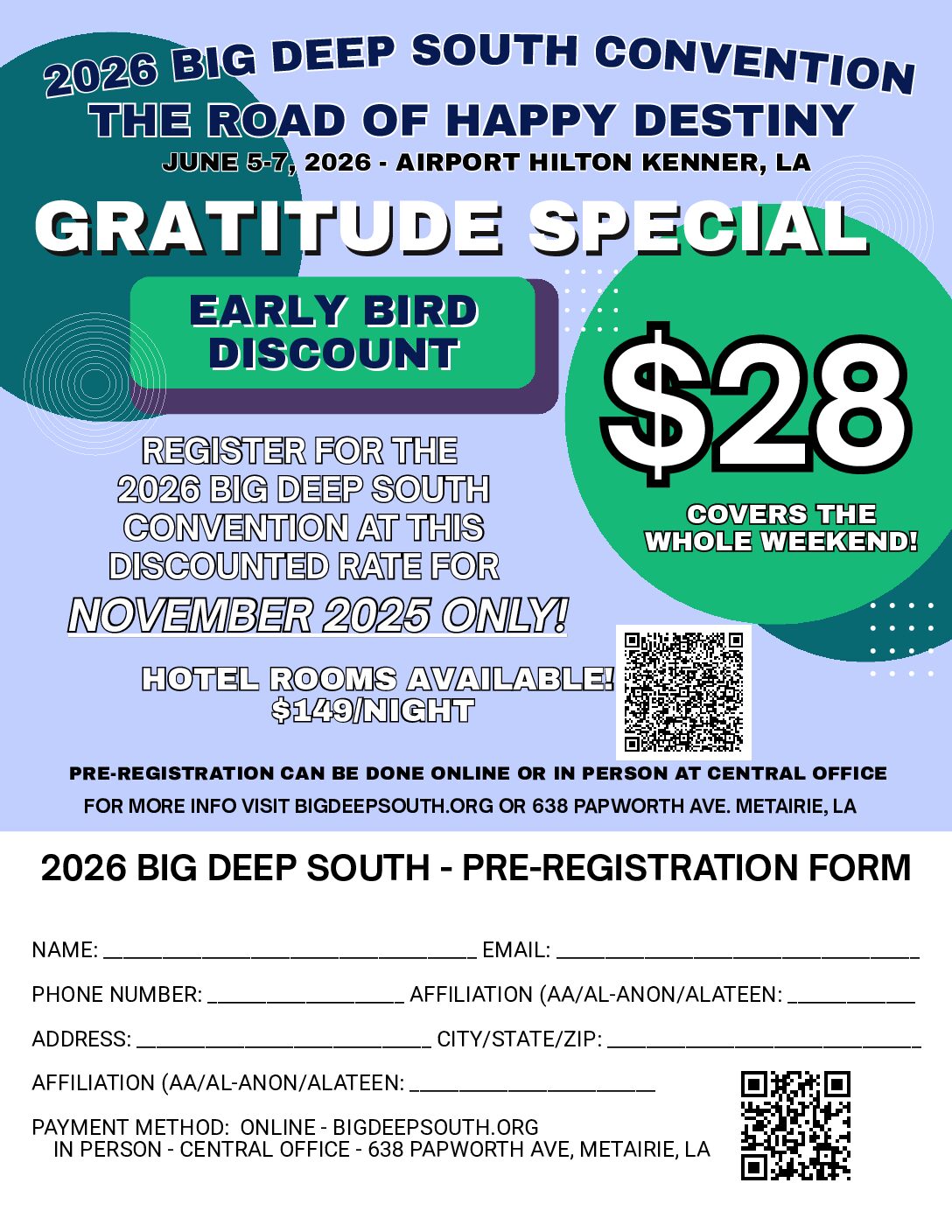 The convention will be June 5-7, 2026 at the Airport Hilton in Kenner, Louisiana (a suburb of New Orleans)