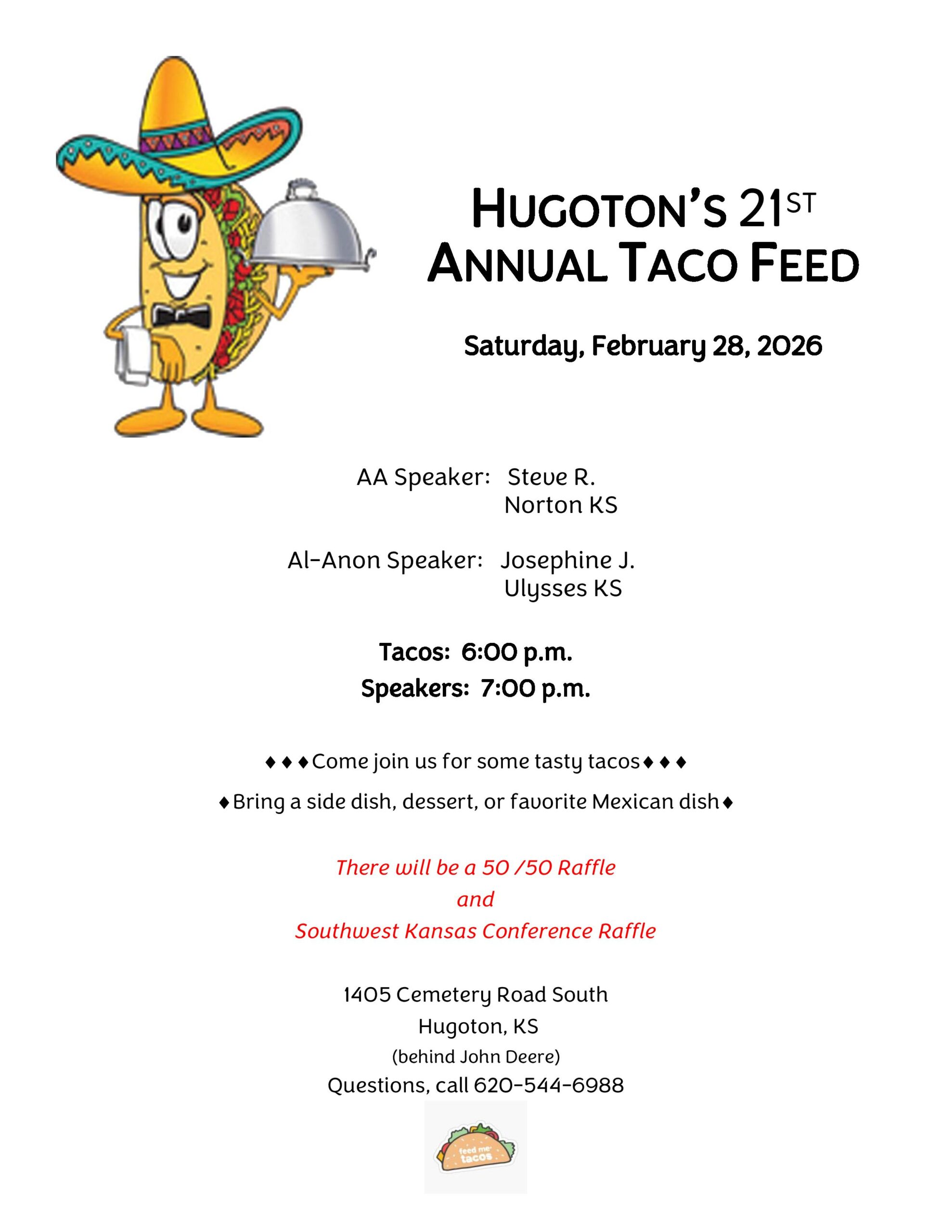 Come join us for some tasty tacos 6pm Speakers at 8pm.